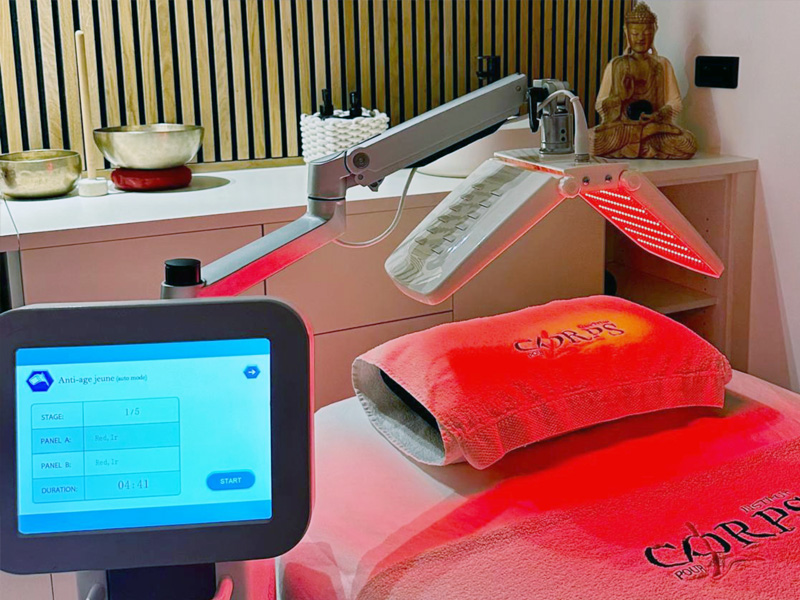 - Les lumières LED esthétiques, intégrées dans des protocoles personnalisés, pour accompagner l’éclat, le confort et l’uniformité du teint