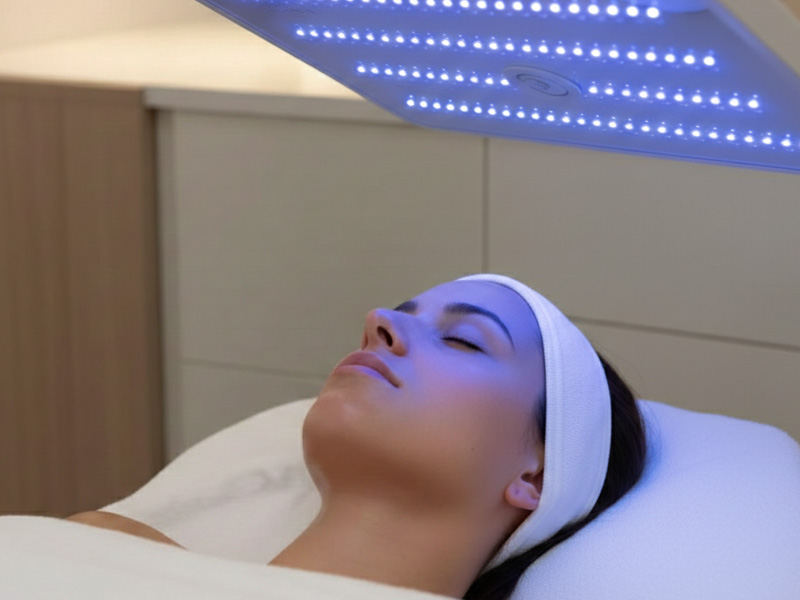 Vous profitez ensuite d’une séance de lumières LED personnalisée, adaptée à votre peau et à vos objectifs. Confortablement installé, vous vous détendez pendant que les LED diffusent leurs bienfaits en profondeur.